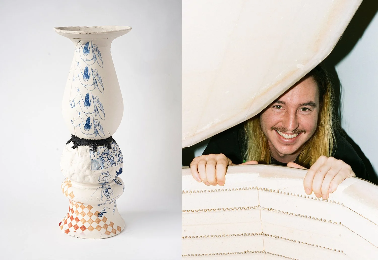 Trevor Baird (n. en 1990, Vancouver, Canada) vit et travaille à Montréal. Il a étudié à l’Université NSCAD, à Halifax, et détient un baccalauréat en céramique de l’Université Concordia. Son travail a récemment été exposé au Eli and Edythe Broad Museum, Lansing; Harpy, Rutherford; The Hole, New York; Projet Pangee, Montréal; Arsenal, Toronto. Il a été sélectionné pour le prix Winifred Shantz en 2019 et sera prochainement exposé au Musée d’art contemporain de Montréa. La pratique de Baird combine le langage ancien de la céramique avec l’esthétique contemporaine des bandes dessinées, créant des objets hybrides qui mélangent le bricolage avec la perfection des productions industrielles. S’intéressant à l’histoire de la fonction, de la décoration, du travail et de la temporalité, Baird renforce la tension entre la préciosité de la porcelaine et son aspect artisanal. À travers des gestes répétés de moulage, de coulée et de sérigraphie, son travail conserve tout en mettant en évidence un processus où l’intervention et l’erreur se voient introduites et cultivées à chaque étape.
