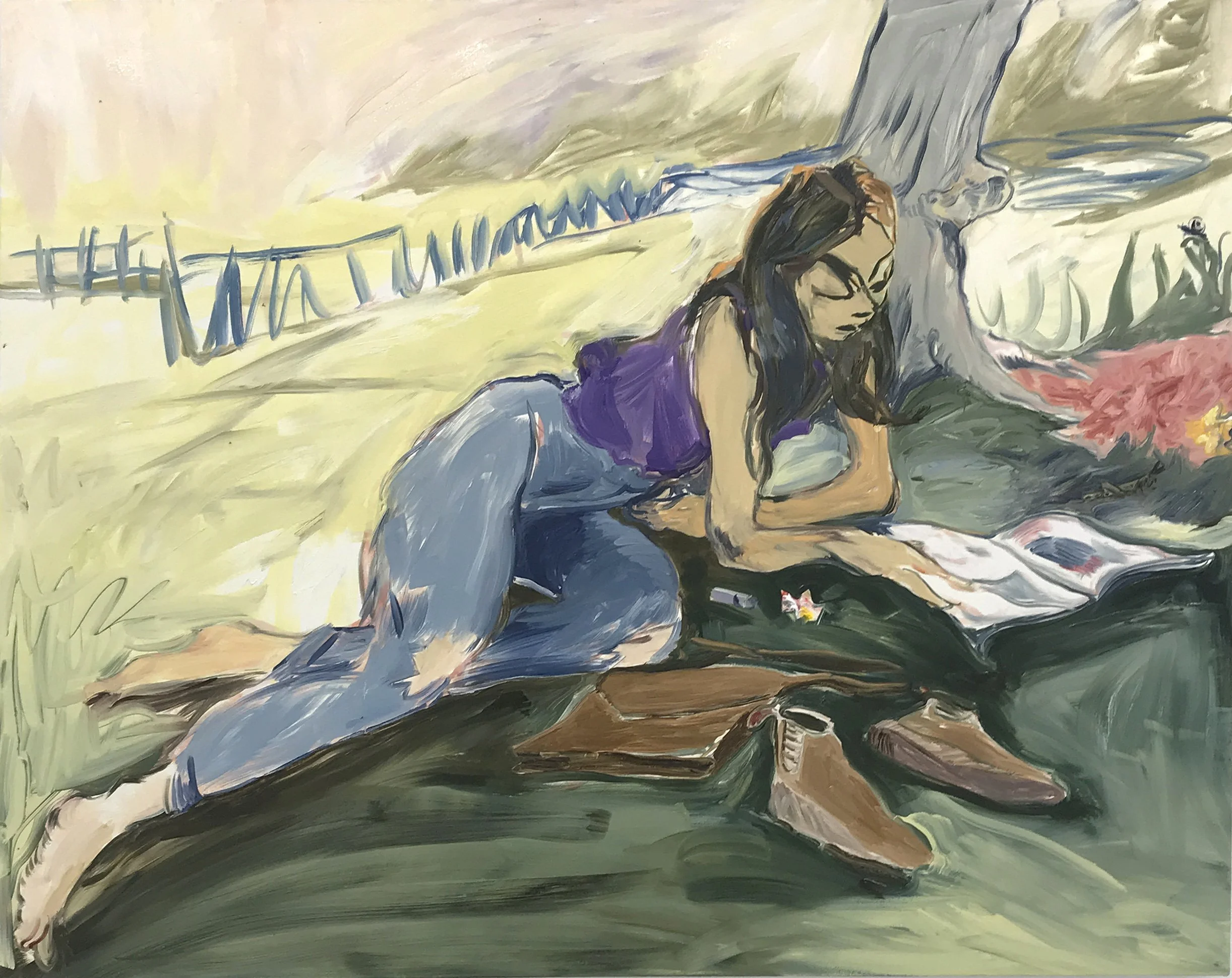 JANE CORRIGAN (née en 1980, Québec, Canada) met en avant des protagonistes et des situations fictifs au milieu de récits qui semblent tirés de story-boards cinématographiques. Utilisant la méthode alla prima d'une manière fluide, presque sculpturale, ses peintures transportent le mouvement à travers des paraboles qui semblent à la fois fin-de-siècle dans leur palette et légèrement anxieuses dans leur symbolisme.